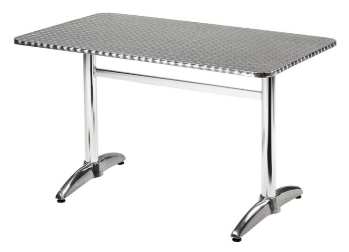 Прямоугольный алюминиевый стол для кафе, фудкорта, бургерной, столовой, террасы, веранды, ресторана, бара, бистро, отеля, гостиницы, пляжа, бассейна, сауны, дачи. Основание и труба алюминиевые. Размеры: Стол алюминиевый 120х70 см, высота стола 72 см. Стол прямоугольный подходит помещения и уличного кафе.